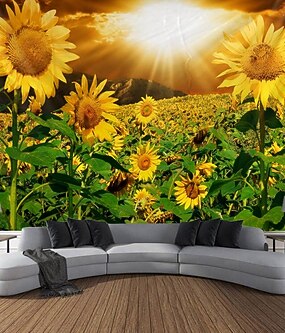 ヒマワリ壁掛けタペストリー壁アート大型タペストリー壁画装飾写真の背景ブランケットカーテンホームベッドルームリビングルーム装飾