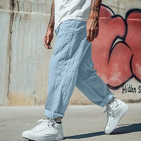 男性用 リネンパンツ ズボン サマーパンツ ハーレムパンツ ポケット ドローストリング 弾性ウエスト 平織り 履き心地よい 高通気性 全長 アウトドア 日常 祝日 ファッション クラシック ブラック ホワイト