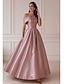 Aライン イブニングドレス エレガント フォーマルドレス フォーマル フロア丈 半袖 オフショルダー ポケット サテン とともに フリル 2025