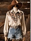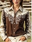 女性用 シャツ ブラウス グラフィック ペーズリー 抽象的 ヴィンテージ 西洋料理 カジュアル 長袖 シャツカラー レギュラートップス 日常 パッチワーク ボタン プリント ブラウン ベージュ 夏 春 秋 冬