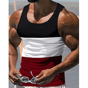 男性用 タンクトップ ベストトップ アンダーシャツ ノースリーブシャツ ノースリーブ クルーネック 春夏 カラーブロック ファッション デザイナー ベーシック パッチワーク バケーション ストリート お出かけ ホワイト ルビーレッド オレンジ メンズトップTシャツ