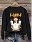 女性用 プルオーバースウェットシャツ 動物 レタード カジュアル 快適 長袖 クルーネック レギュラートップス ストリート 日常着 プリント ブラック ピンク ブルー グレー 秋 冬