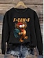 女性用 プルオーバースウェットシャツ フーディーズ グラフィック 動物 レタード ファッション カジュアル 長袖 クルーネック ラウンドネック レギュラートップス ストリート 日常着 カジュアル プリント ブラック ルビーレッド オレンジ グリーン 春 秋 冬