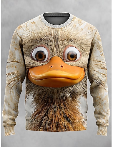 女性用 プルオーバースウェットシャツ グラフィック 動物 ファッション ベーシック カジュアル 長袖 クルーネック レギュラートップス ストリート 日常着 カジュアル プリント ブルー ブラウン カーキ色 ベージュ 秋 冬