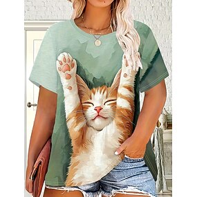 女性用 Tシャツ グラフィック 動物 猫 ヴィンテージ スタイリッシュ クラシック 半袖 クルーネック ラウンドネック レギュラートップス 日常 週末 プリント ライトグリーン 夏 春