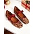 メタリックなアクセントが付いたカラフルな花柄のローヒールフラットシューズ。秋のストリートウェアや街歩きにぴったりの、芸術的なヴィンテージスタイルの快適なシューズです。