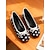 スクエアトゥとリボンのディテールが特徴の、シックでエレガントなスタイルの女性用白と黒のバレエフラット。カジュアルな外出、オフィスウェア、ティーパーティーに最適です。
