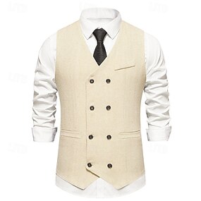 男性用 ベスト チョッキ ジレ バケーション パーティー ビジネス ファッション カジュアル 夏 春 ボタン ポケット ポリエステル 快適 平織り ダブルブレスト ラペル レギュラー ブラック ベージュ コーヒー ベスト