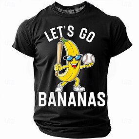 男の短袖グラフィックTシャツ 'バナナしよう' 面白い野球バナナダジャレ