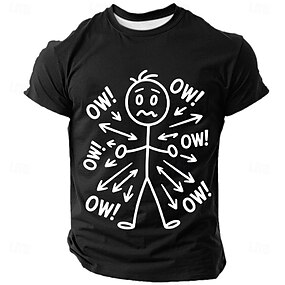 男の面白いグラフィックTシャツ - ダメージ加工されたスティックフィギュア「痛っ!」デザイン短袖Tシャツ、痛みのユーモアとライフスタイル