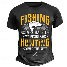 男性用グラフィックショートスリーブTシャツ:釣りは私の問題の半分を解決し、狩りは残りを解決する - 面白いアウトドア趣味