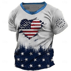 愛国心あふれる男性用Tシャツ アメリカの国旗Tシャツ 短袖Tシャツ 3Dプリント クルーネックシャツ ファッション デイリーベーシック ストリート カジュアル デイリー ブラック ホワイト ブルー 夏 春 オールシーズンクロージング