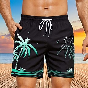 男性用 ココナッツの木 熱帯植物 スイムトランク スイムショーツ ボードショーツ ミディアムウエスト 3Dプリント ハワイアン サーフィン 祝日 ビーチ ドローストリング メッシュ裏地付き 弾性ウエスト デザイナー 衣類