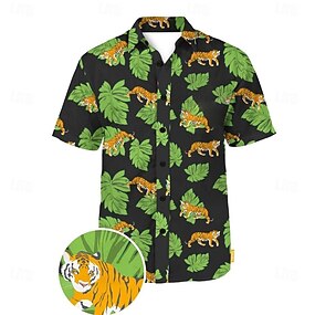 男性用 動物 レオパード シャツ アロハシャツ 半袖 シャツ 折襟 トロピカル風 ファッション ハワイアン アウトドア ストリート ハワイアン ブラック ブラウン グリーン S M L