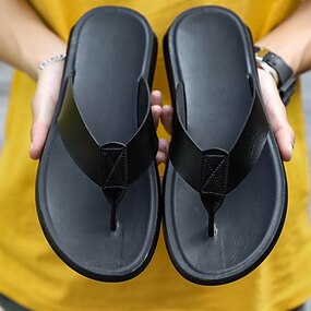 メンズカジュアルフェイクレザーフリップフロップサンダル - 夏のビーチウェアや普段使いに最適な、ストラップデザインの快適なスリッポントングスタイル
