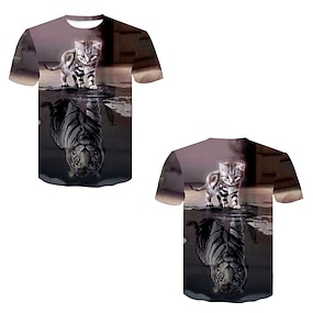 男性用 男女兼用 猫 3D シャツ Tシャツ 半袖 Tシャツ 3Dプリント クルーネック シャツ デザイナー ベーシック アニマル カジュアル 日常 ブラック / グレー 夏 衣類 標準 S M L XL XXL 3XL 4XL