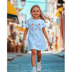 女子 3D 動物 ドレス 半袖 夏 春 バケーション 日常 祝日 プリンセス 美しい 甘い 子供 4〜12年 カジュアルドレス 膝丈 レギュラー