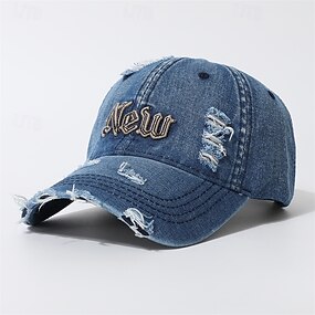 男性用 ベースボールキャップ 日よけ帽 トラッカーハット ブラック ブルー ジーンズ 刺繍 引き裂かれました ファッション カジュアル ストリート 日常 レタード 調整可能 サンスクリーン 高通気性