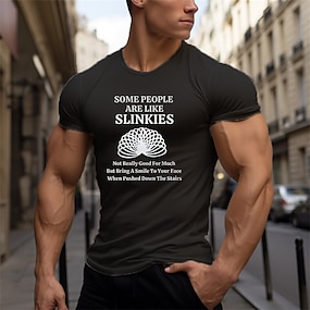 男性の皮肉なグラフィックTシャツ - 『ある人々はスリンキーのようだ』ダークユーモア短袖Tシャツ、オリーブグリーン