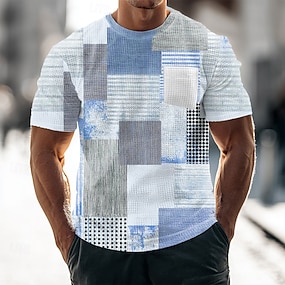男性用 幾何学模様 ワッフルシャツ 半袖 Tシャツ 3Dプリント クルーネック シャツ ファッション 日常 デザイナー ストリート カジュアル 日常 ライトピンク ブルー カーキ色 夏 春 衣類 S M L XL XXL XXXL