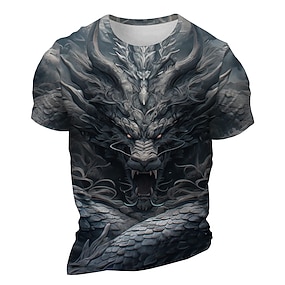 男性用 グラフィック 動物 ドラゴン Tシャツ 半袖 Tシャツ 3Dプリント クルーネック シャツ 日常 デザイナー レトリ/ヴィンテージ スポーツ・アウトドア 祝日 お出かけ ブルー オレンジ グリーン 春夏 衣類 S M L XL 2XL 3XL 4XL
