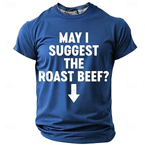メンズ面白いグラフィックTシャツ 'ローストビーフを提案してもいいですか?' 下向き矢印の粗野なユーモア短袖トップ