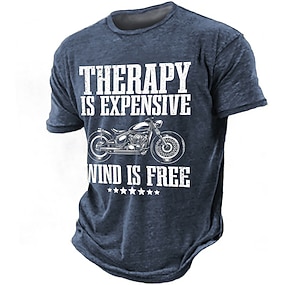 男性用ショートスリーブグラフィックTシャツ | セラピーは高い、風は無料バイクライダー引用Tシャツ
