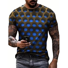 男性用 幾何学模様 パッチワーク Tシャツ ヘンリーシャツ 半袖 Tシャツ 3Dプリント ヘンリー シャツ デザイナー レトリ/ヴィンテージ ストリート カジュアル 日常 ブルー パープル カーキ色 夏 春 オールシーズン 衣類 S M L XL 2XL 3XL