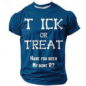 男性用のおもしろいハロウィン pun グラフィック T シャツ - 'トリック・オア・トリート 私の骨見た?' 半袖