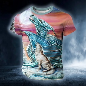 Halloween 男性用 ドラゴン 3D Tシャツ 半袖 Tシャツ 3Dプリント クルーネック シャツ 誇張された デザイナー アーティスティック ストリート カジュアル 日常 レイクブルー ブルー グリーン 夏 春 オールシーズン 衣類 S M L XL XXL XXXL