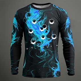 男性用 グラフィック 地獄の炎 火炎 Tシャツ 長袖 Tシャツ 3Dプリント クルーネック シャツ ファッション デザイナー カジュアル スポーツ・アウトドア 祝日 お出かけ ブルー パープル オレンジ 春 & 秋 衣類 S M L XL 2XL 3XL