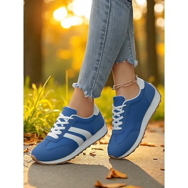 メッシュデザインのアクセントが付いた女性用ブルーカラーブロックアスレチックスニーカー - ランニングや普段履きに最適なスタイリッシュなカジュアルシューズ