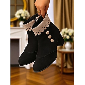 女性用ヴィンテージレースアップアンクルブーツ - パーティー、結婚式、コスプレに最適なレトロなスエードハイヒールビクトリアンブーツ