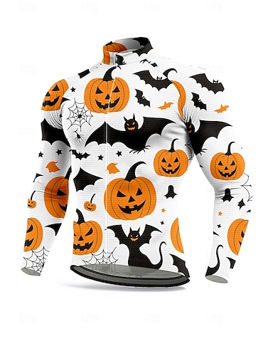 男性用 男性 トップス サイクリングジャージー グラフィック ハロウィーン ハロウィンのカボチャ 長袖 バイク ジャージー トップス 3つのリアポケット付き サンケア 日焼け防止 サンスクリーン 速乾性 スポーツ オレンジ 衣類