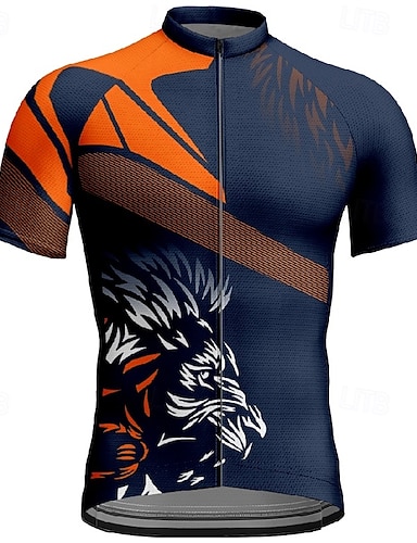 男性用 サイクリングジャージー 虎 半袖 バイク Tシャツ ジャージー 3つのリアポケット付き マウンテンサイクリング 速乾性 人間工学デザイン ウィッキング 高通気性 スポーツ ダークブルー 衣類