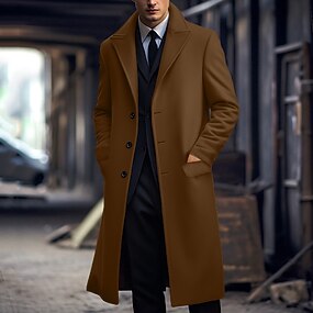 男性用 冬物コート オーバーコート ロングトレンチコート アウトドア デイリーウェア 秋冬 ポリエステル 保温 ウィンドブレーカー アウターウェア 衣類 ファッション ストリートファッション 平織り ラペル ダブルブレスト
