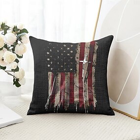 ヴィンテージ装飾クッションカバー 1個 インディペンデンスデー アメリカの国旗のソフトなスクエアクッションカバー、寝室、リビングルーム、ソファ、椅子、カーキ、ダークグレー、黒、白