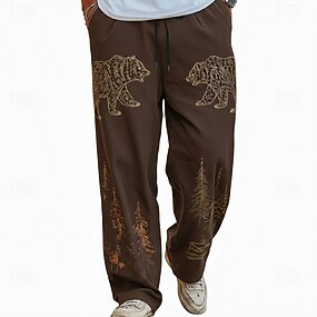 男性用 ベア 森林 パンツ カジュアルパンツ ミディアムウエスト 巾着ゴムウエスト ヴィンテージレトロ アウトドア キャンピング&ハイキング ハンティング ストレートレッグパンツ 春 秋 3Dプリント ブラウン グリーン ダークブルー