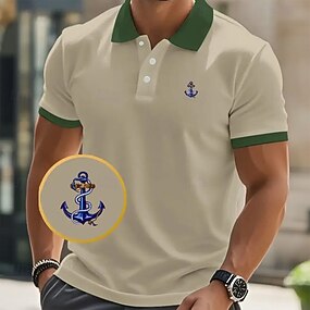 男性用 カラーブロック ポロ 半袖 ポロシャツ 襟付きシャツ カジュアル 学校 デイリーウェア 部屋着 3Dプリント 夏 春 秋 ブラウン