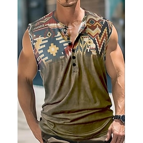 男性用 ビンテージ タンクトップ ヘンリーシャツ ノースリーブ ヴィンテージ ファッション デザイナー アウトドア カジュアル 日常 夏 春 & 秋 カーキ色 ヘンリー ヘンリーTシャツ
