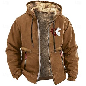 男性用 カウボーイ しか フーディーズ ファッション 日常 長袖 フード付き 祝日 トラベル ストリートウェア ブラウン グレー ドローストリング ジッパー ポケット 秋 冬 デザイナー