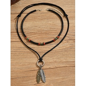 メンズレイヤードフェザーペンダントネックレス、パーティー、フェスティバル、カジュアルウェアに最適な調節可能な合金トライバルボヘミアンチョーカージュエリー。