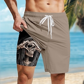 男性用 スカル ハート型 ゴシック 裏地付きショートパンツ 2 in 1 スイムショーツ スイムショーツ ミディアムウエスト ハワイアン レトリ/ヴィンテージ 祝日 サイドポケット コンプレッションライナー付き 伸縮性のあるドローストリングウエスト デザイナー 衣類
