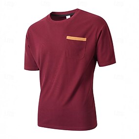 男性用 ワッフルTシャツ 半袖 クルーネック ヘンリー 夏 オールシーズン 純色 ファッション デザイナー スポーティー フロントポケット アウトドア カジュアル 日常 ブラック ブルー バーガンディー メンズトップTシャツ