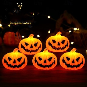 3個 6.3 * 5.2cm 恐ろしい笑顔のカボチャLED電子装飾ライト屋内と屋外のレストランパーティーの雰囲気の装飾ライト ag10 * 3バッテリー