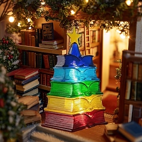 1個 12cm クリスマスブック クリスマスツリー LEDナイトライト リビングルーム ショーケース 本棚 デスクトップ 装飾ライト オーナメントライト オーナメントライト