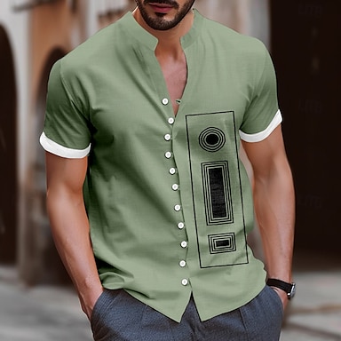 男性用 幾何学模様 抽象芸術 シャツ サマーシャツ ボタンアップシャツ 半袖 ファッションカジュアル バケーション スポーツ・アウトドア ビーチウェア 夏 春 折襟 襟付きシャツ フロントポケット1つ グリーン