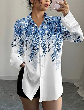女性用 シャツ フラワー 日常 スタイリッシュ カジュアル 長袖 シャツカラー レギュラートップス ワーク 日常 祝日 ボタン ブルー 春 秋