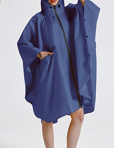 女性用 クローク / 岬 防水 防風 ジッパー ポケット カジュアル 平織り アウトドア バケーション ストリート お出かけ ロング フード付き ルーズフィット 長袖 アウターウェア イエロー ブルー 秋 冬