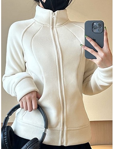 女性用 シェルパジャケット 快適 高通気性 ジッパー ポケット カジュアル 平織り バケーション ストリート カジュアル デイリーウェア ジッパ- レギュラー スタンド レギュラー 長袖 アウターウェア ホワイト ピンク パープル 春 秋
